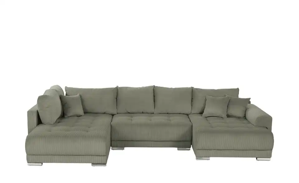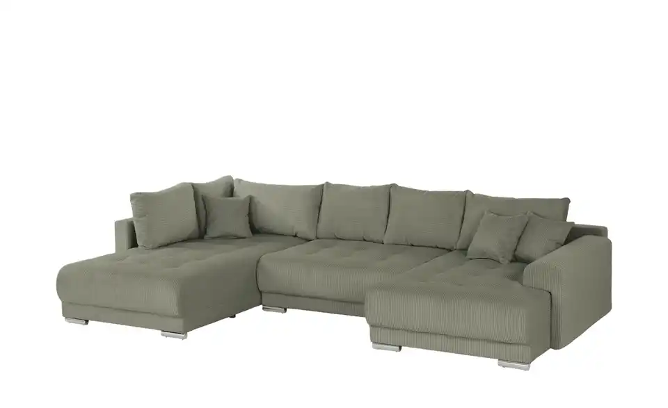 Richtig viel Platz für Freunde und Familie: Diese Wohnlandschaft überzeugt mit zwei einladenden Ottomanen und einer praktischen Schlaffunktion. Sitzen Sie zur Familienfeier bequem zusammen oder genießen Sie in großer Runde einen Filmeabend mit Freunden. Platz gibt es hier genug. Und wenn es doch etwas länger wird, können Sie mit nur wenigen Griffen den Mittelteil umklappen und zu einer Liegefläche umfunktionieren. Dann finden zwei Übernachtungsgäste problemlos Platz. Das dazugehörige Bettzeug lässt sich außerdem im geräumigen Bettkasten unter der Sitzfläche verstauen.Lieferung & Versand