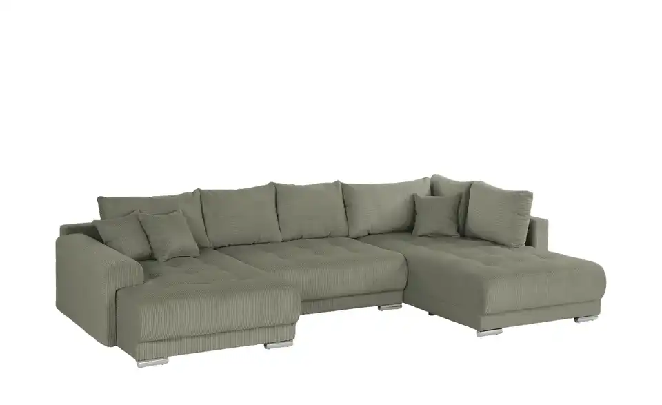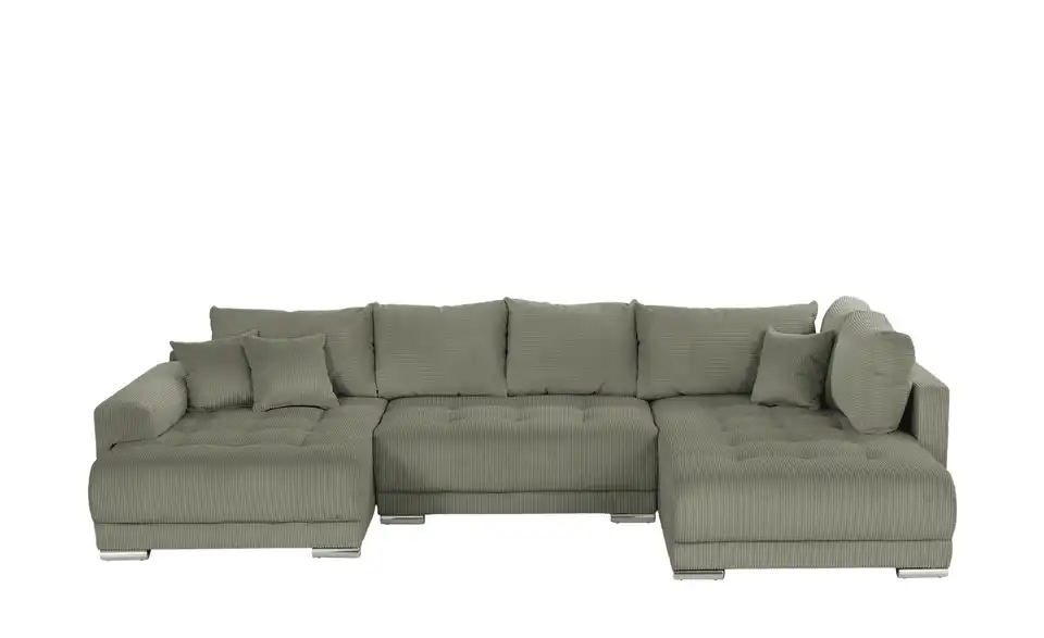 Richtig viel Platz für Freunde und Familie: Diese Wohnlandschaft überzeugt mit zwei einladenden Ottomanen und einer praktischen Schlaffunktion. Sitzen Sie zur Familienfeier bequem zusammen oder genießen Sie in großer Runde einen Filmeabend mit Freunden. Platz gibt es hier genug. Und wenn es doch etwas länger wird, können Sie mit nur wenigen Griffen den Mittelteil umklappen und zu einer Liegefläche umfunktionieren. Dann finden zwei Übernachtungsgäste problemlos Platz. Das dazugehörige Bettzeug lässt sich außerdem im geräumigen Bettkasten unter der Sitzfläche verstauen.Lieferung & Versand