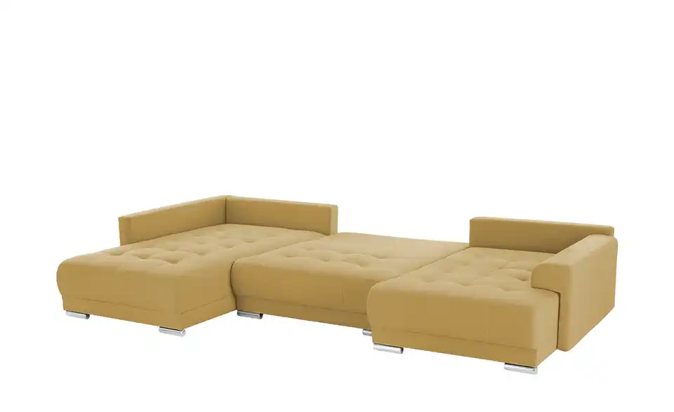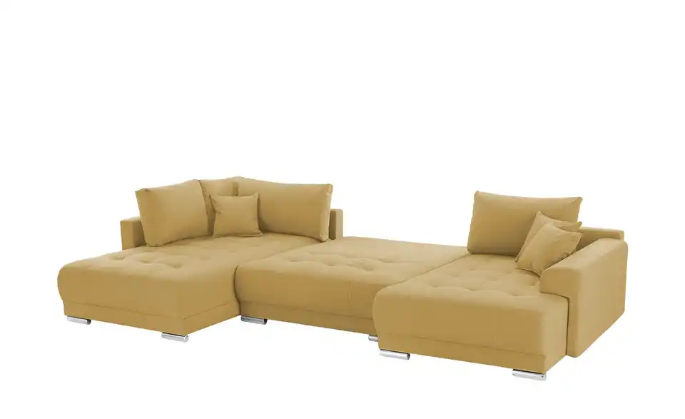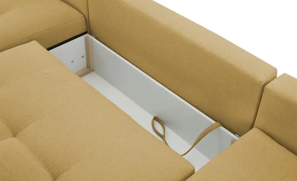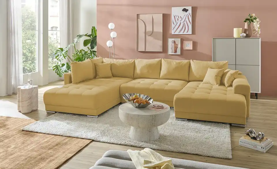 Richtig viel Platz für Freunde und Familie: Diese Wohnlandschaft überzeugt mit zwei einladenden Ottomanen und einer praktischen Schlaffunktion. Sitzen Sie zur Familienfeier bequem zusammen oder genießen Sie in großer Runde einen Filmeabend mit Freunden. Platz gibt es hier genug. Und wenn es doch etwas länger wird, können Sie mit nur wenigen Griffen den Mittelteil umklappen und zu einer Liegefläche umfunktionieren. Dann finden zwei Übernachtungsgäste problemlos Platz. Das dazugehörige Bettzeug lässt sich außerdem im geräumigen Bettkasten unter der Sitzfläche verstauen.Lieferung & Versand