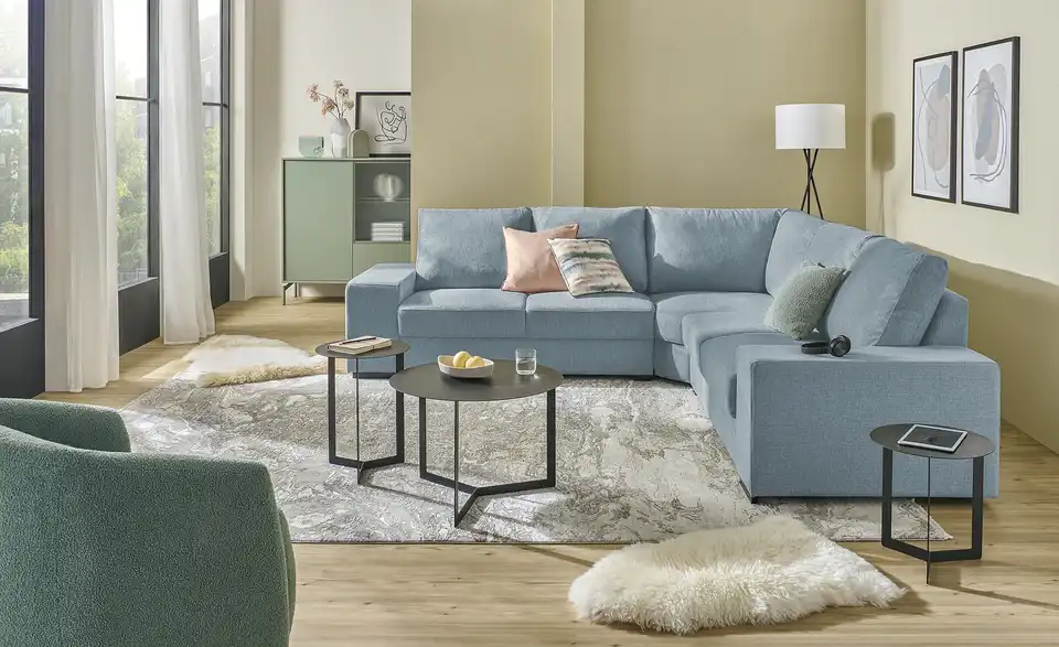 Mit diesem Ecksofa nutzen Sie Ihr Zuhause hervorragend aus. Die Couch lässt sich dank des echt bezogenen Rückens frei im Raum platzieren und hat eine komfortable Polsterung aus Schaumstoff für das maximale Wohlfühlerlebnis. Das Fundament des Sitzmöbels ist ein Gestell, welches aus Massivholz besteht. Um Rückenkissen brauchen Sie sich keine Gedanken mehr zu machen, denn diese liegen dem Sofa bereits bei. Lehnen Sie sich bequem zurück und genießen Sie die Entspannung auf der Couch.Lieferung & Versand