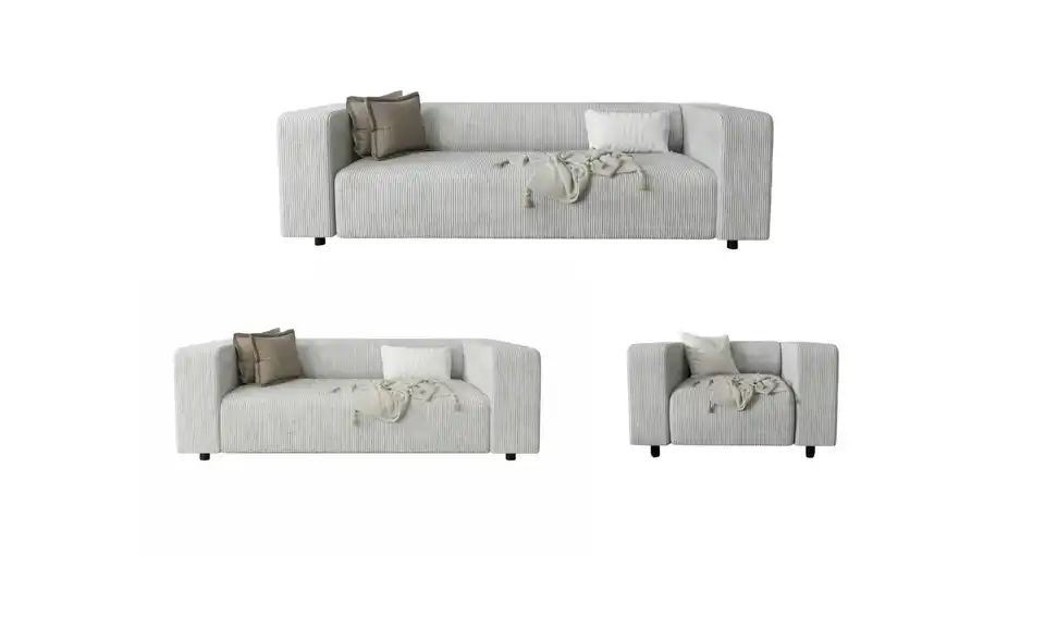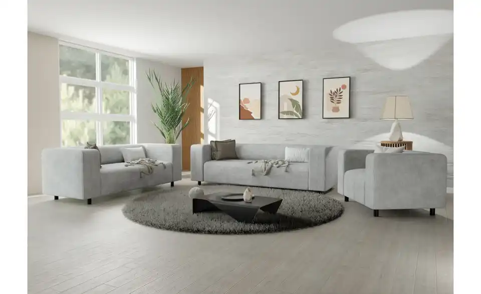 - Lieferumfang / mitgeliefertes Zubehör3-Sitzer Sofa, 2-Sitzer Sofa, Sessel, Montagematerial