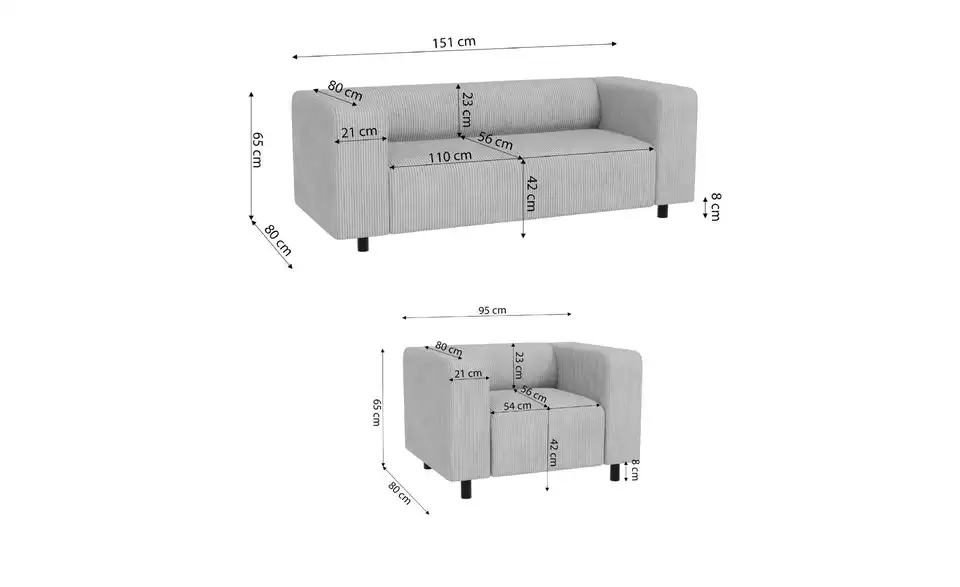 - Sofa 2-sitzig (BxHxT)151 x 65 x 80 cm