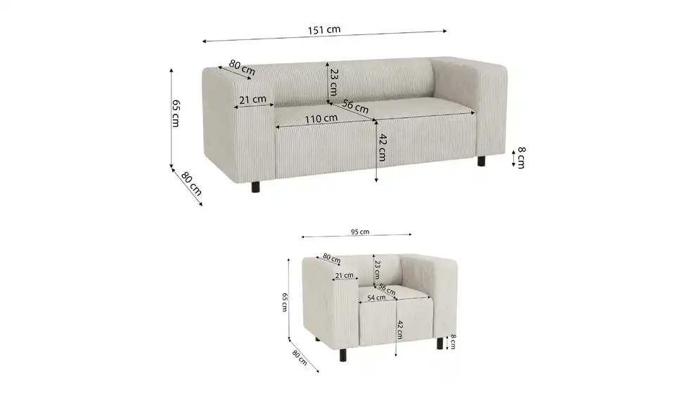 - Sofa 2-sitzig (BxHxT)151 x 65 x 80 cm