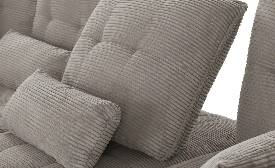 - Materialzusammensetzung TextilBezug Sitz / Rückenlehne Cord:100% PolyesterBezug Korpus Flachgewebe: 98% Polyester, 2% Polyamid