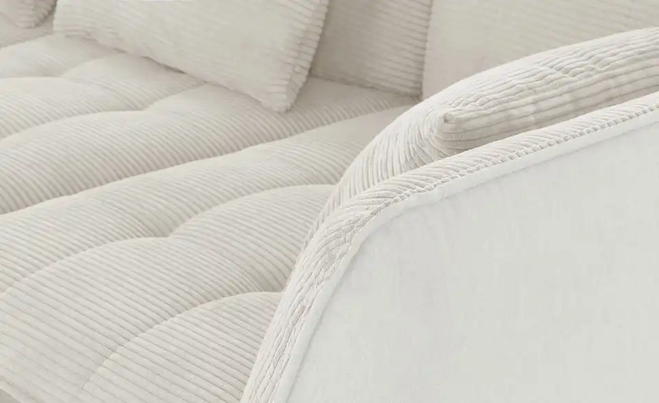 - Materialzusammensetzung TextilBezug Sitz / Rückenlehne Cord:100% PolyesterBezug Korpus Flachgewebe: 98% Polyester, 2% Polyamid