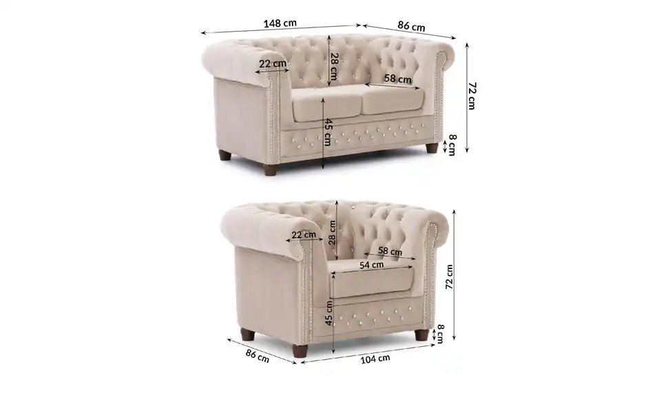 S-STYLE Chesterfield Polstergarnitur 2+1 Cleo Blink