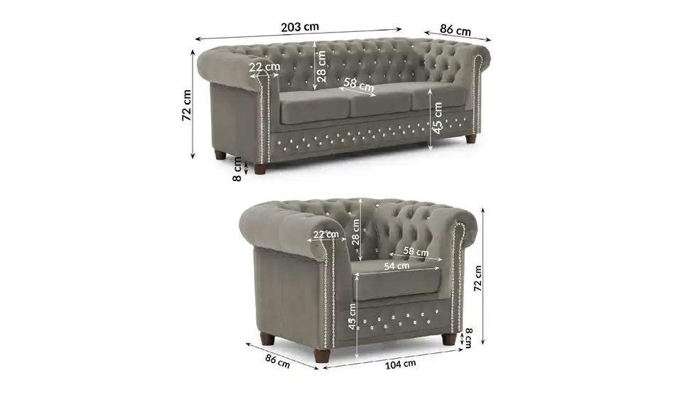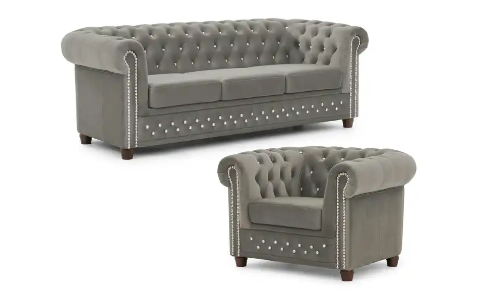 S-STYLE Chesterfield Polestergarnitur 3+1 Cleo Blink