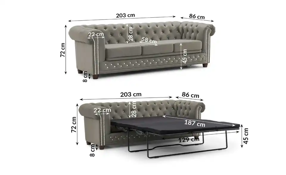 - Lieferumfang / mitgeliefertes Zubehör1 x 3-Sitzer Sofa mit Schlaffunktion