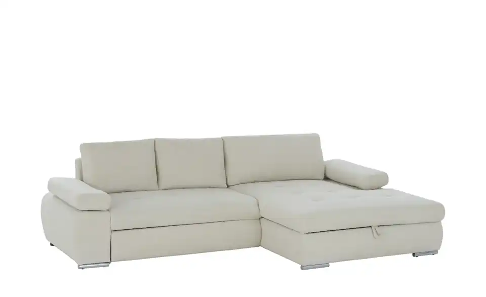 Das Ecksofa Ibby mit seiner weitläufigen L-Form bietet viel Platz zum Entspannen und Erholen. Die Sitzfläche ist mit einer Wellenunterfederung ausgestattet. Darauf befindet sich eine Polsterung aus Schaumstoff, die sich auch im Rückenbereich und den Armlehnen wiederfindet. Somit ist ein angenehmes Sitzen und Liegen gewährleistet. Für noch mehr Komfort sind drei Rückenkissen im Lieferumfang enthalten. Die Armlehnen lassen sich individuell verstellen. Ein weiteres Highlight von Ibby ist die Schlaffunktion: Ziehen Sie Ibby einfach zum Gästebett aus. Im großzügigen Bettkasten unter der Sitzfläche können Sie zum Beispiel Bettwäsche für den Besuch verstauen. Ibby ist rundum mit einem einfarbigen Stoff bezogen. So können Sie Ibby auch frei in den Wohnraum stellen. Wählen Sie aus verschiedenen strapazierfähigen Stoffbezügen und bestimmen Sie die Gestaltung Ihres Sofas ganz einfach selbst.Lieferung & Versand