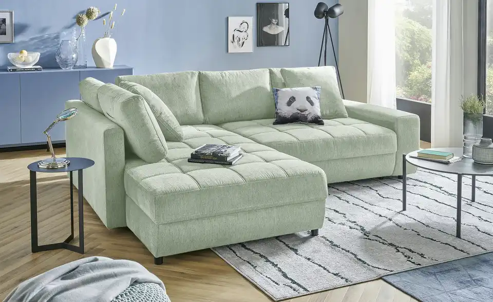 Dieses Ecksofa verbindet modernes Design mit durchdachter Funktionalität. Dank der integrierten Schlaffunktion entsteht im Handumdrehen eine großzügige Liegefläche. Der belüftete Bettkasten bietet praktischen Stauraum, während der mitgelieferte Hygiene-Topper für zusätzlichen Schlafkomfort sorgt. Der pflegeleichte Flachgewebe-Bezug lässt sich meist einfach mit Wasser reinigen und ist ideal für Familien und Haustierbesitzer, da er vor dem Ausfasern durch Tierkrallen schützt und über eine flammhemmende Schutzschicht verfügt. Machen Sie es sich bequem und genießen Sie entspannte Stunden auf dem Ecksofa Arissa de Luxe.Lieferung & Versand
