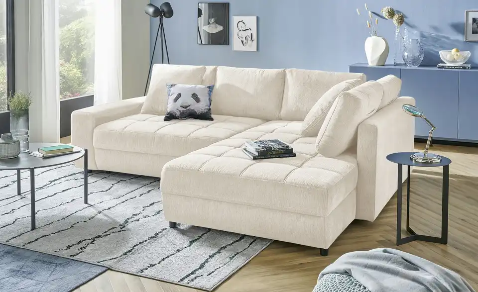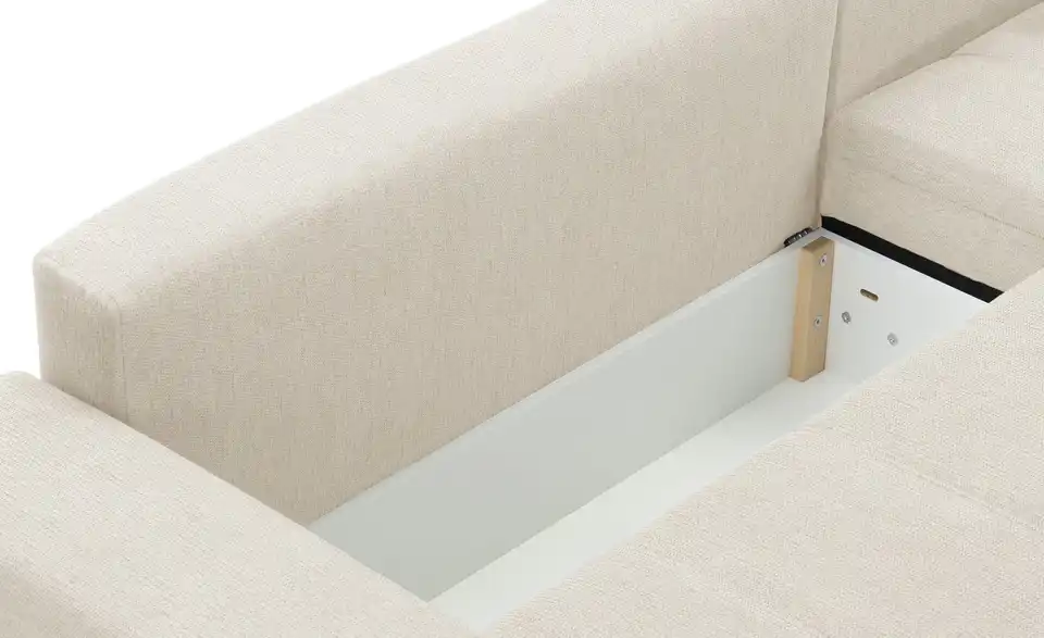 Dieses Ecksofa verbindet modernes Design mit durchdachter Funktionalität. Dank der integrierten Schlaffunktion entsteht im Handumdrehen eine großzügige Liegefläche. Der belüftete Bettkasten bietet praktischen Stauraum, während der mitgelieferte Hygiene-Topper für zusätzlichen Schlafkomfort sorgt. Der pflegeleichte Flachgewebe-Bezug lässt sich meist einfach mit Wasser reinigen und ist ideal für Familien und Haustierbesitzer, da er vor dem Ausfasern durch Tierkrallen schützt und über eine flammhemmende Schutzschicht verfügt. Machen Sie es sich bequem und genießen Sie entspannte Stunden auf dem Ecksofa Arissa de Luxe.Lieferung & Versand