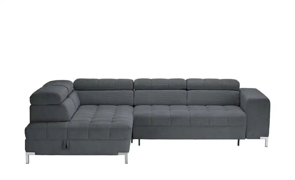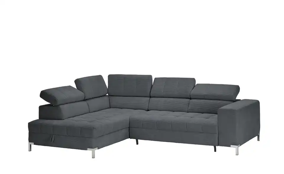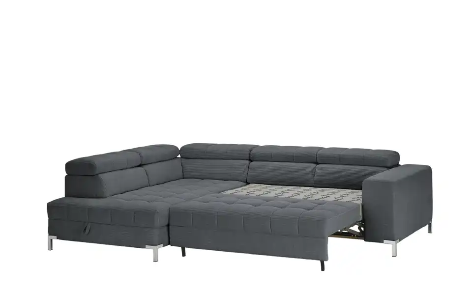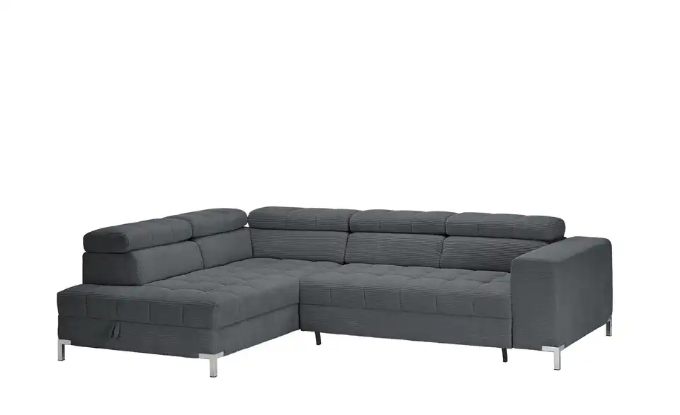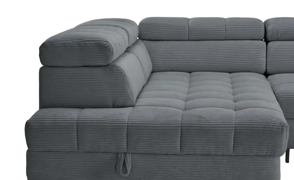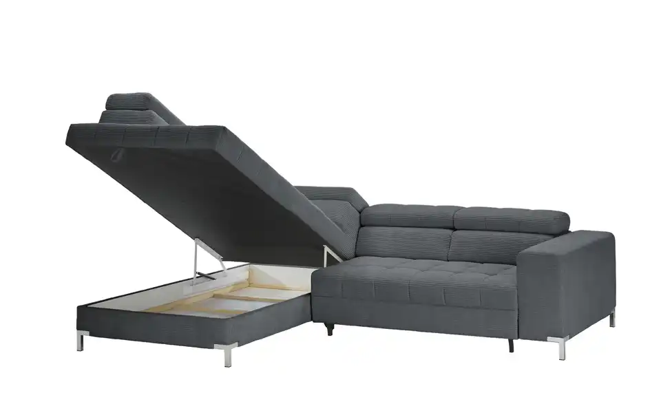 Dieses Ecksofa ist eine großartige Bereicherung für Ihre Einrichtung. Die Couch wird dank der Kopfteilverstellung zu einer absoluten Oase der Entspannung, lädt aufgrund des Federkerns sowie der Polsterung aus Schaumstoff zum Relaxen ein und ist frei im Raum platzierbar. Das Gestell ist aus Metall gefertigt. Die Couch weist einen Bettkasten, in dem die Gästebettwäsche verstaut werden kann, auf, nimmt 284 x 97 x 200 cm ein und lädt mit der geräumigen Sitztiefe von 62 cm zum Relaxen ein. Dieses Sofa garantiert jedem Zuhause außergewöhnliche Wohlfühlmomente.Lieferung & Versand