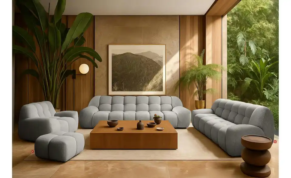 - Lieferumfang / mitgeliefertes Zubehör1x Polsterhocker, 1x Sessel, 1x 2-Sitzer Sofa, 1x 3-Sitzer Sofa