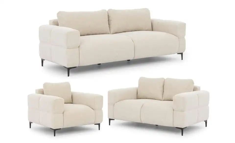 - Lieferumfang / mitgeliefertes Zubehör1 x 3-Sitzer Sofa, 1 x 2-Sitzer Sofa, 1 x Sessel