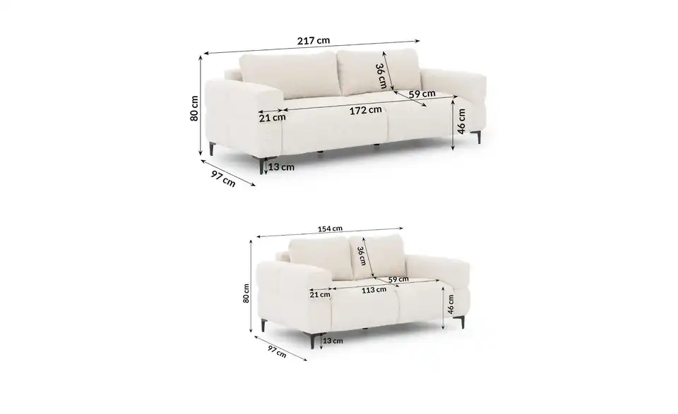 - Mehr zu MaßenSitzbreite - 3-Sitzer 172 cm; 2-Sitzer: 113 cm