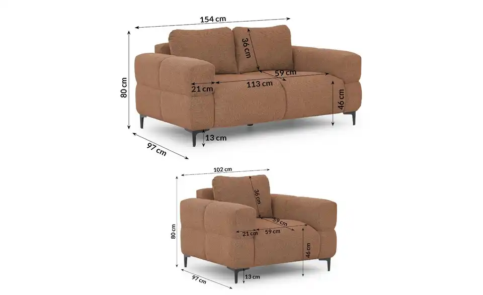 - Mehr zu MaßenSitzbreite - 2-Sitzer 113 cm; Sessel 59 cm