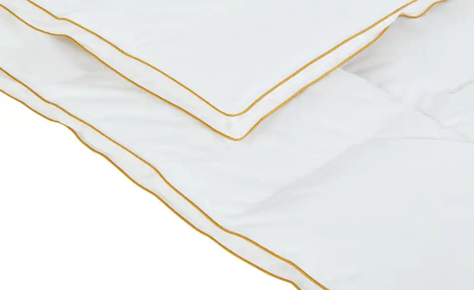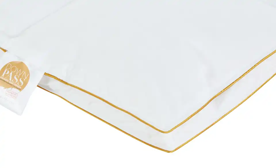 - Materialzusammensetzung TextilBezug 100% Baumwolle mit goldener BieseFüllung Gänsedaunen (90%) und -federn (10%)