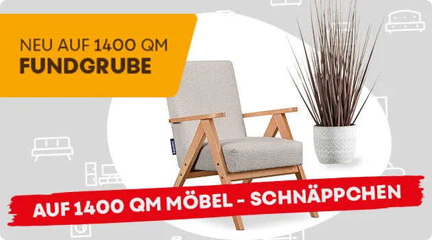Entdecken Sie in unserer Möbelfundgrube schnell und günstig das passende Möbelstück für Ihr Zuhause. Auf rund 1.400 Quadratmetern präsentieren wir Ihnen eine große Auswahl an attraktiven Möbeln zu besonders fairen Preisen.