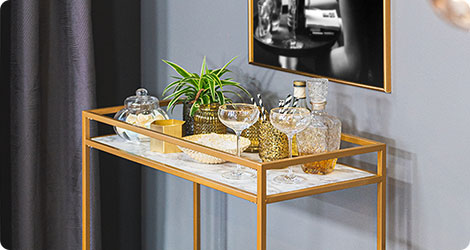Das goldfarbige Metall des Servierwagens Ginger ist die