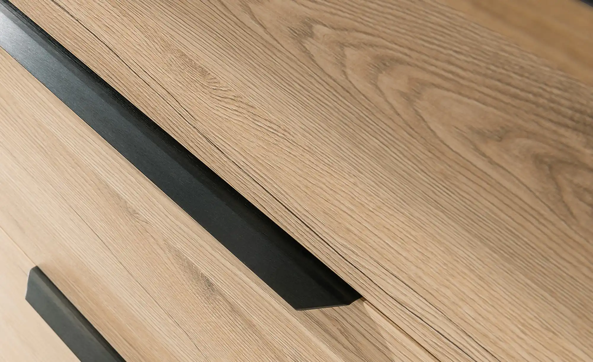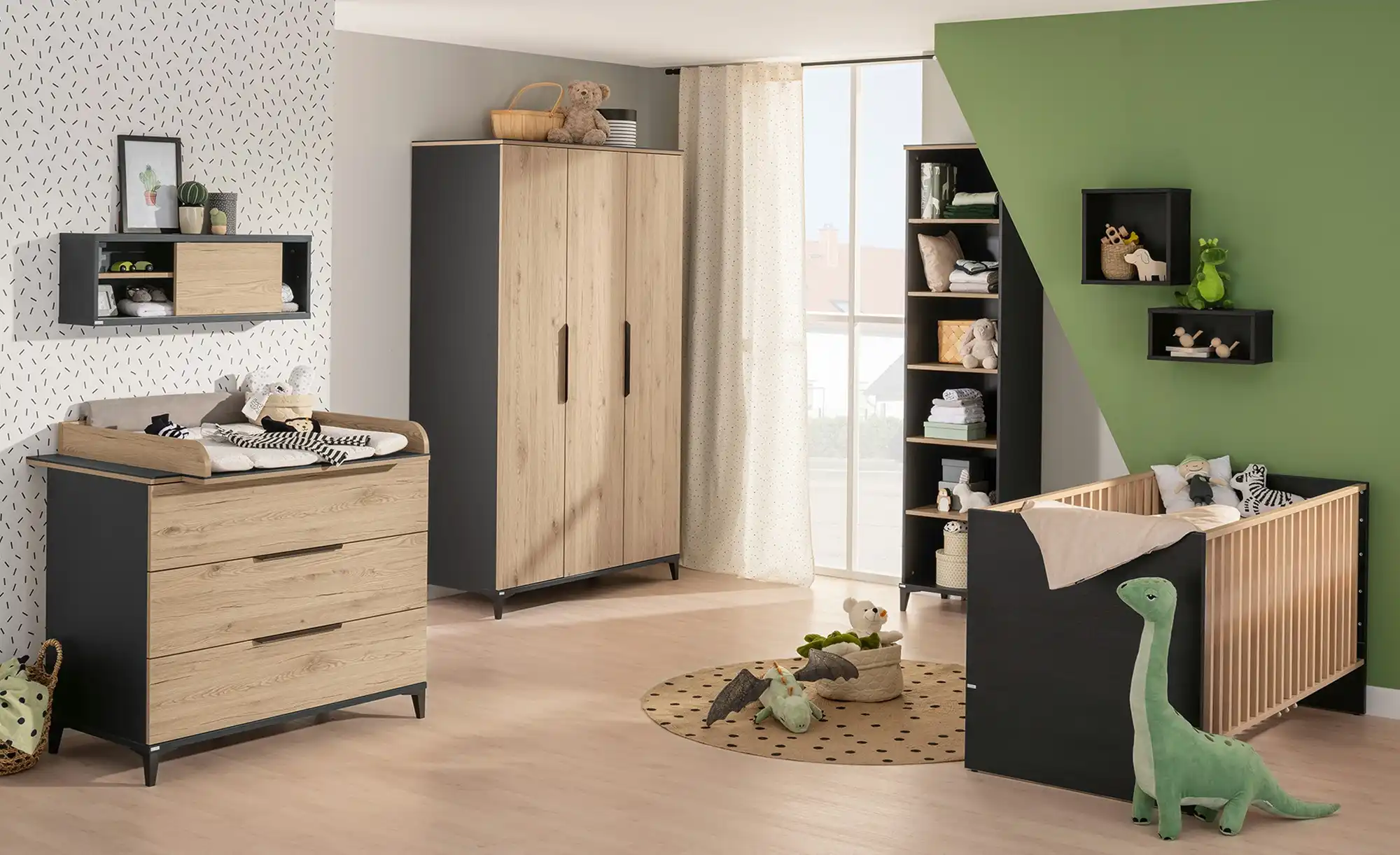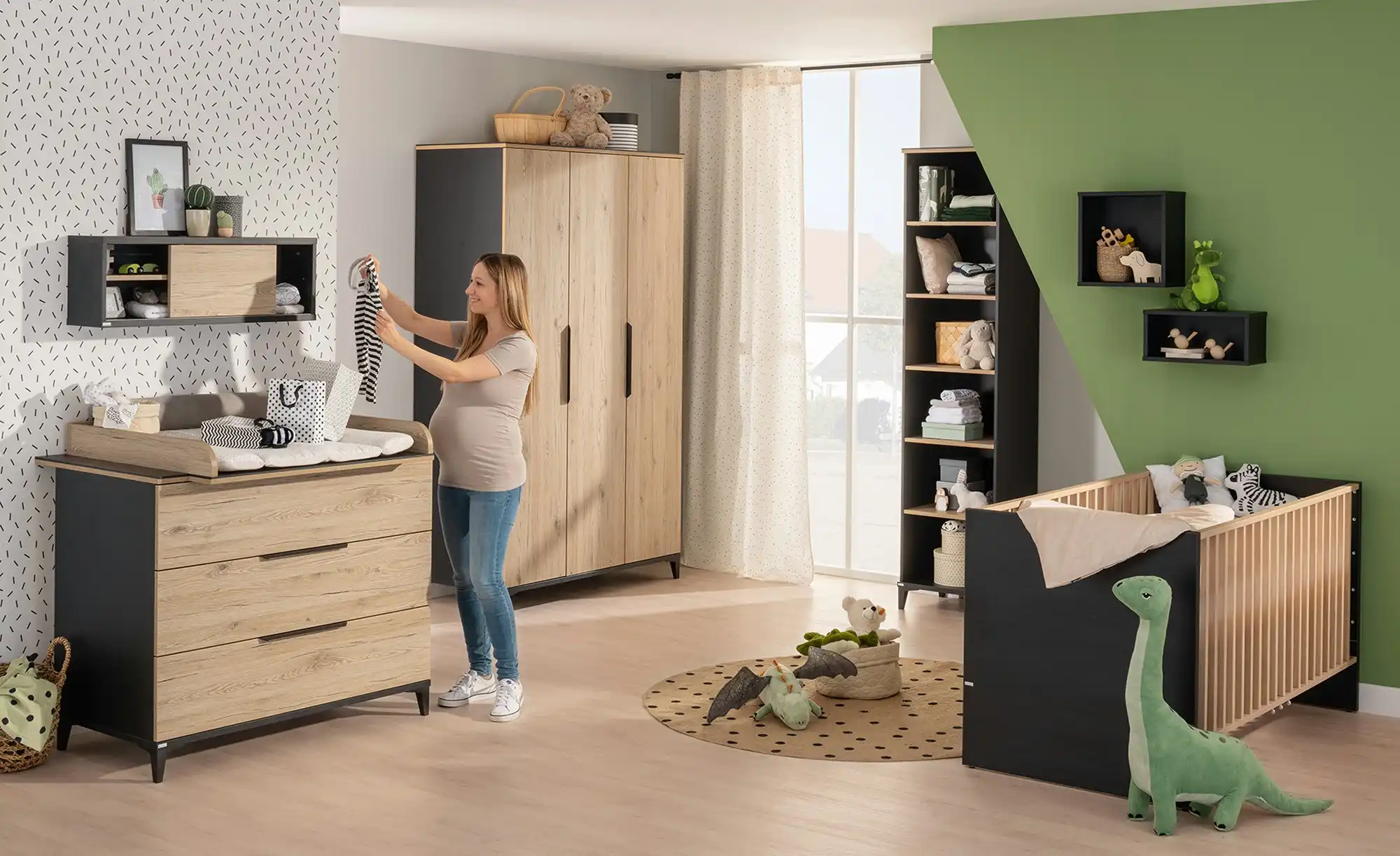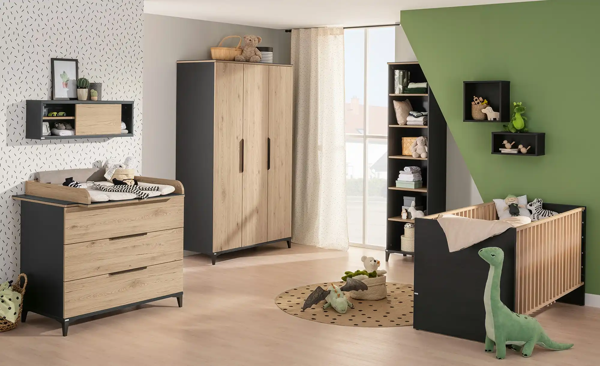 • Interessantes Design in Naturschwarz und Eiche-Bordeaux Nachbildung