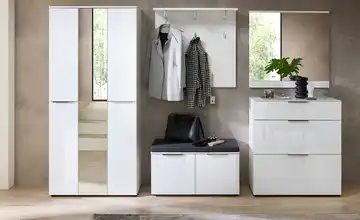 - Inklusive 5 Haken, 3 Kleiderstangen und 1 Hutboden