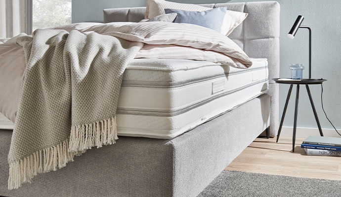 Erholsame Nächte beginnen mit einem komfortablen Bett. Mit den Boxspringbetten von vanDoorn sind Sie bestens beraten, denn sie überzeugen mit Premium-Qualität und besten Liegeeigenschaften. Ein dreifacher Aufbau aus Unterbox, Matratze und Topper erlaubt eine optimierte Körperabstützung und ergonomische Abfederung, die perfekt auf Ihre Liegebedürfnisse zugeschnitten ist. Die große Auswahl an Modellen unterschiedlichster Größen, Optiken, Matratzen- und Topper-Qualitäten sowie Härtegraden können Sie Ihr Traumbett individuell konfigurieren.